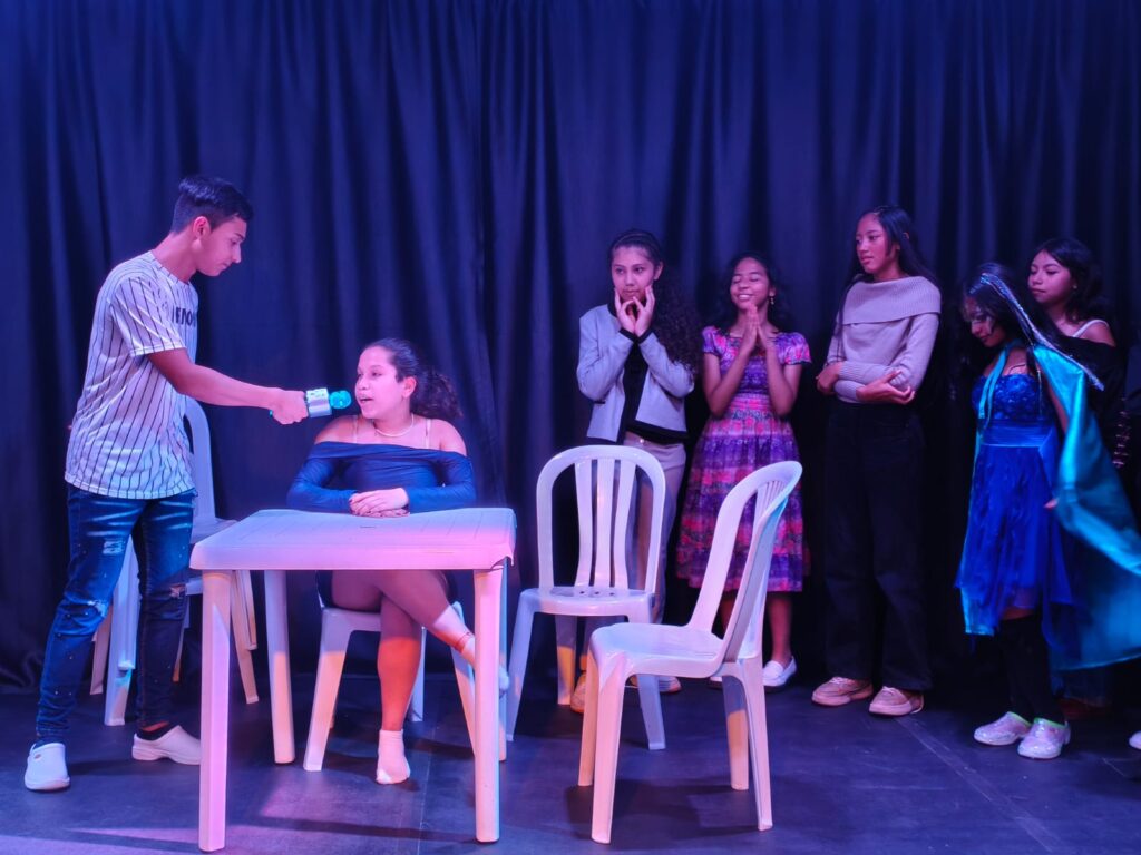El 8 de octubre el grupo Hambre de Arte del Crea Castilla acude al llamado del encuentro de Muestras de teatro infantil, juvenil y estudiantil, que busca visibilizar las propuestas escénicas que se están desarrollando en la localidad de Kennedy con el apoyo de la sala de teatro Tea Tropical, quienes fueron los encargados de recibir a las y los jóvenes artistas que nos deleitaron con una tarde de risas, baile, reflexiones y mucho talento.
