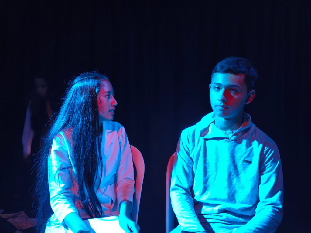 El grupo Hambre de Arte hace parte del Crea Castilla y está a cargo de la Artista Formadora Sonia Archila y llegan al escenario con Aeternum, una propuesta que nos invita a explorar la vida de las internas de un manicomio y su recién llegada compañera que intenta adaptarse a este nuevo entorno. Durante este viaje nos damos cuenta de los malos tratos que reciben las pacientes por parte de quienes se supone deben cuidarles y ofrecerles ayuda, y nos da la posibilidad de explorar lo que significa ver el mundo a través de los ojos de quienes lo habitan desde lugares muy diferentes debido a las enfermedades mentales. La propuesta todo el tiempo nos propone cambios de escenario, escenas psicodélicas y actuaciones increíbles. El final de la presentación se corona con una reflexión sobre el respeto que merecen las personas por el simple hecho de serlo, sin tener que juzgar por las condiciones en las que estas se encuentren, tanto físicas como mentales. Para cerrar, nos enteramos que la dramaturgia fue escrita por Maria Camila Muñoz Serna, integrante y actriz del grupo, quien recibe ovaciones por parte del público y los otros grupos. Escuchar estas nuevas propuestas de las y los jóvenes nos da una visión de las maneras en las que ellas y ellos viven este mundo tan estructurado y mecanizado en el que poco a poco nos vemos envueltos y por el cual olvidamos a quienes empiezan el camino en este mismo. El tiempo pasa, el mundo avanza y las personas que lo habitan hacen lo mismo y escuchar a quienes vienen nos permite adaptarnos mejor a todo lo que viene y estar ahí para ellas y ellos.