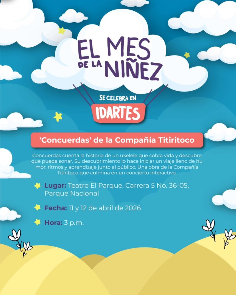Durante abril, en el marco del mes de la niñez, el Instituto Distrital de las Artes – Idartes presenta una programación cultural y artística pensada para niñas, niños y sus familias y cuidadores, con una agenda que incluye teatro, música, experiencias interactivas y actividades de creación en diferentes espacios de la ciudad.