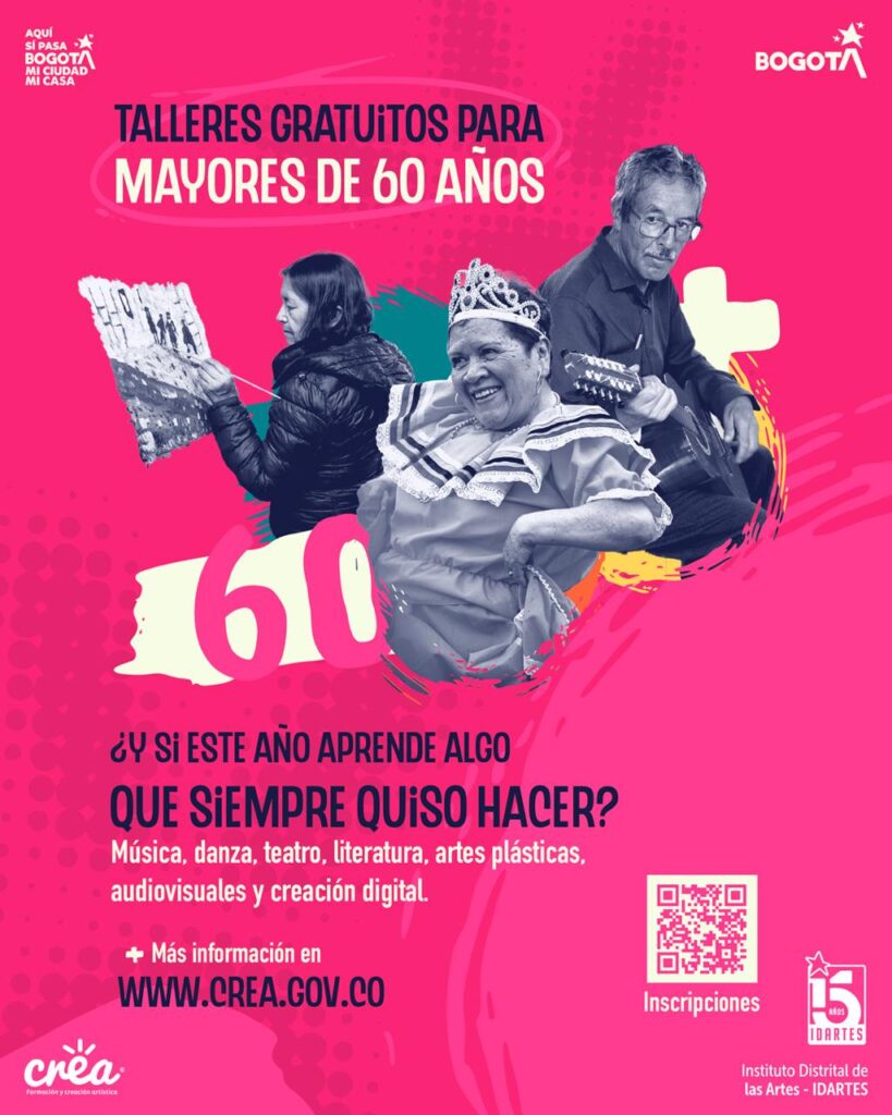 En Bogotá, las personas mayores pueden inscribirse en procesos de formación artística sin costo, donde la danza, la música, la literatura, el teatro, las artes plásticas, audiovisuales y electrónicas se convierten en espacios para expresarse, compartir y crear con sentido.