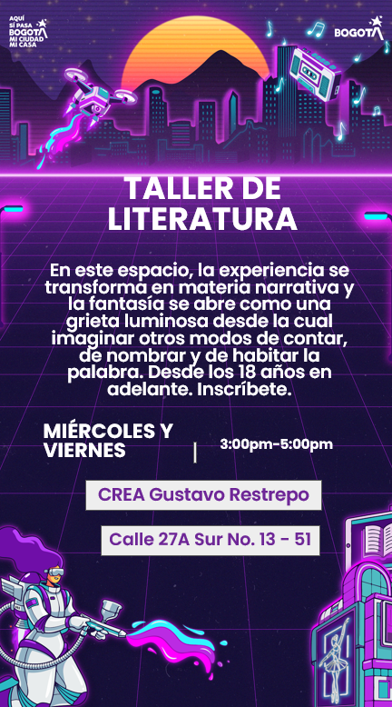 En este espacio, la experiencia se transforma en materia narrativa y la fantasía se abre como una grieta luminosa desde la cual podrás imaginar otros modos de contar, nombrar y habitar la palabra.