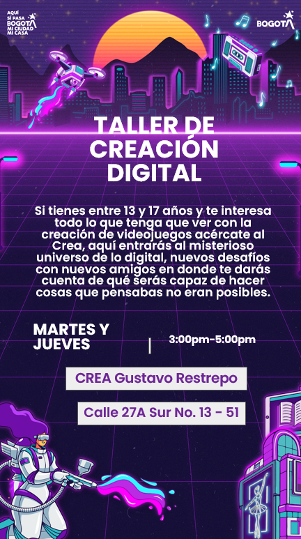 Si tienes entre 13 y 17 años y te interesa la creación de videojuegos, este espacio es para ti. En el CREA Gustavo Restrepo podrás adentrarte en el misterioso universo digital, explorar nuevas herramientas, desarrollar tus ideas y convertirlas en proyectos creativos.