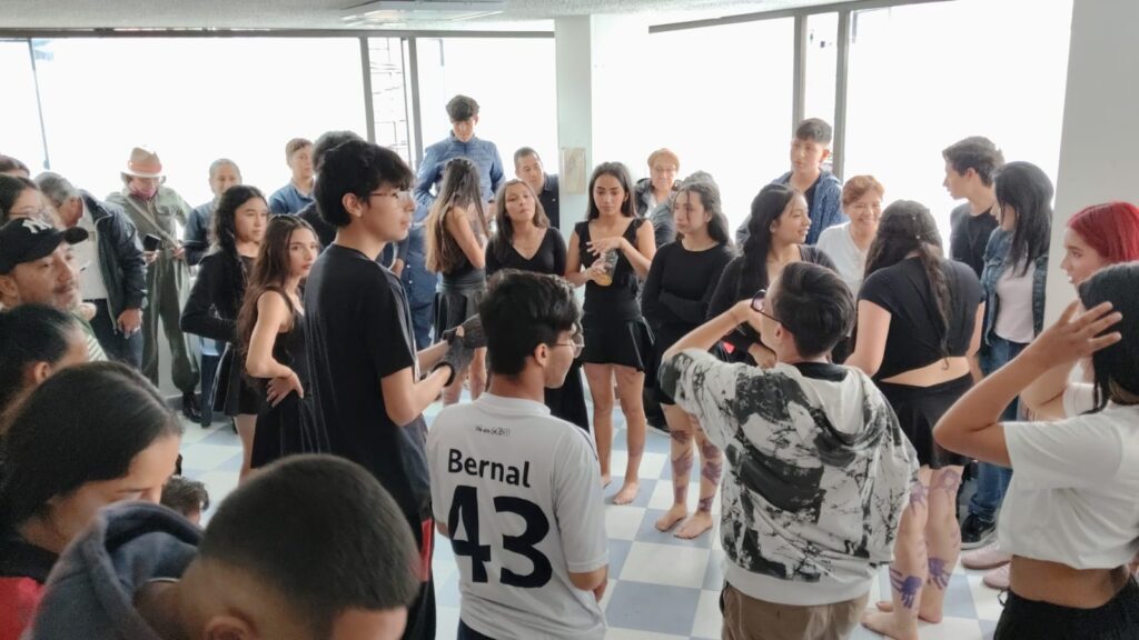 En este espacio, los grupos de danza de la línea Impulso Colectivo y la línea Arte en la Escuela participaron en un taller abierto con enfoque en la creación y la expresión corporal, seguido de una conversación sobre los procesos creativos que se desarrollan en sus prácticas.