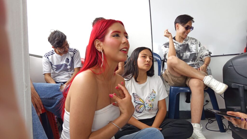 Se llevó a cabo una sesión de sensibilización sobre creación digital utilizando la plataforma Hydra. Además, se proyectó el cortometraje “Sucamuxi”, realizado por el grupo de Audiovisuales, seguido de un diálogo colectivo.