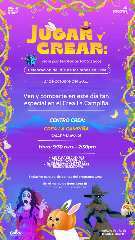 Con motivo de la celebración del Día de los niños , el 31 de ocbure el Crea La Campiña realizará una jornada cultural que combinará el encanto de las historias de misterio con la riqueza de nuestras tradiciones ancestrales.