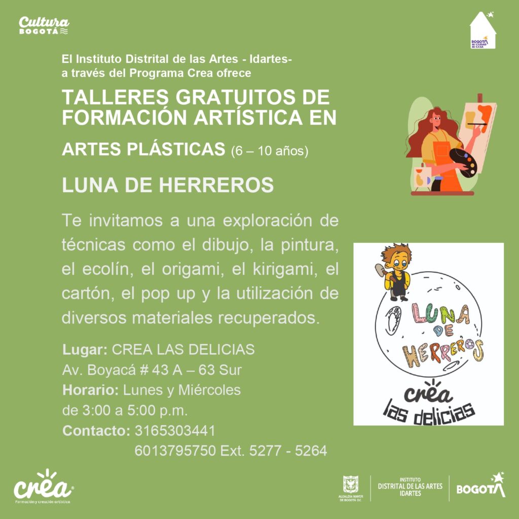 Acércate al Crea Las Delicias e inscríbete a los talleres de formación artística que inician esta misma semana.