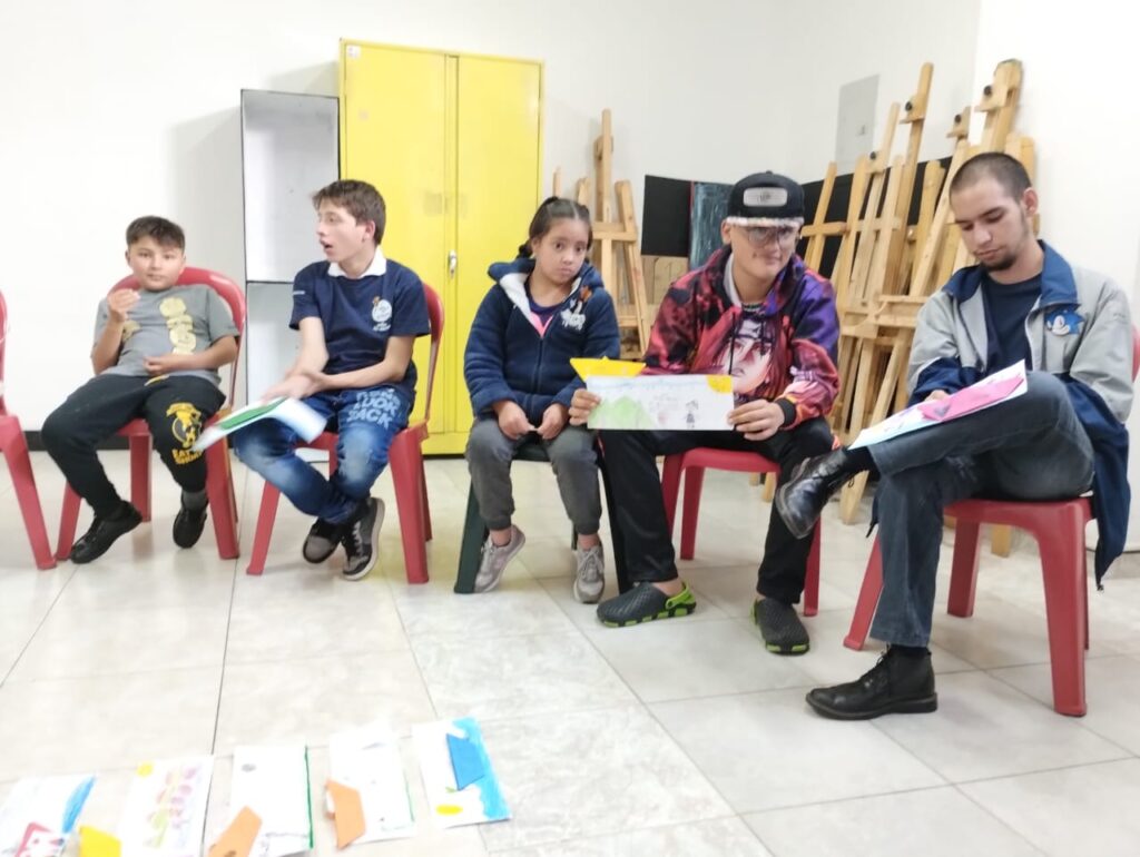 Las línea de arte en la escuela e impulso colectivo del Crea se unieron para generar un intercambio epistolar de cartas, en donde La idea es que les propongamos a los niños, niñas jóvenes y adultos de los colectivos un diálogo con los niños, niñas de los IED del Crea. A partir de preguntas como: