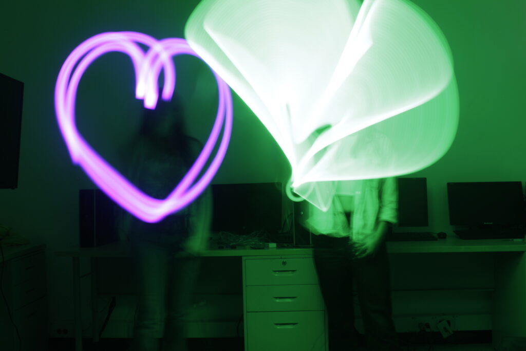 Las áreas, Artes plásticas y Audiovisuales, en representación de Esteban Forero y Duván Rodríguez, respectivamente, dieron luz verde al ejercicio Light painting o fotografía de larga exposición, el cual permitió a los participantes, un acercamiento a las artes visuales, un recordatorio del trabajo en equipo y una invitación a la creatividad.