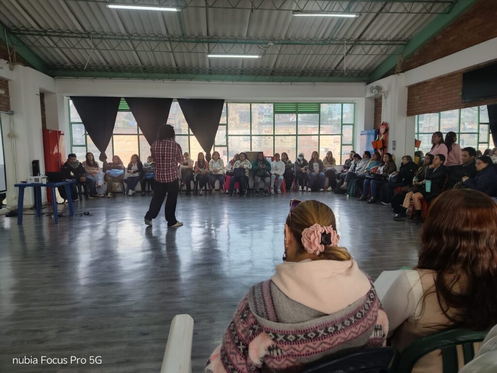 La actividad que estuvo a cargo de los artistas formadores Lina Hueso, Creación Digital y Cristian Trujillo, Danzas, tuvo como propósito generar un espacio de reconocimiento emocional y cuidado personal. A través de la danza y de la comprensión del código como un principio presente no solo en la programación de sistemas electrónicos, sino también en los sistemas vivos, se buscó crear un momento de presencia, disfrute y atención plena.