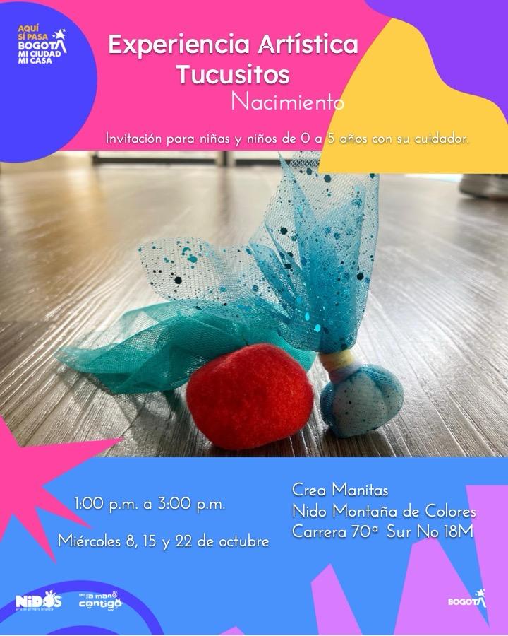 ¡Hola bienveNidos! 👋🏻 Este es el mes de los “Tucusitos”, ven con tus niños y niñas a disfrutar de un espacio de exploración y juego junto a las dos mensajeras del colibrí. Mamá y papá colibrí cuidarán de los “Tucusitos” que acaban de salir del huevo🥚 ¿Te gustaría cuidar, cantar y contar historias a los Tucusitos? Te esperamos mañana miércoles a partir de la 1:00 pm, en el espacio Nidos Montaña de Colores ⛰️ 🌈 CREA Manitas. 😊