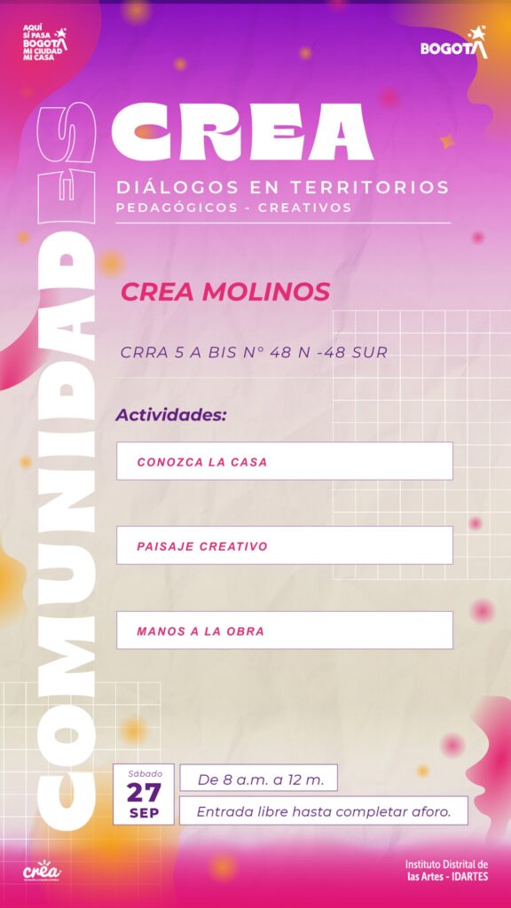 📧 Escríbenos a: crea.molinos@idartes.gov.co