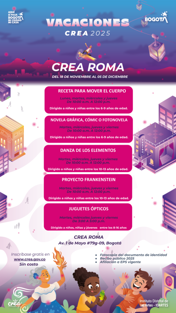 El Crea Roma da inicio a la temporada de vacaciones con una amplia programación de talleres artísticos gratuitos, diseñados para que niños, niñas y jóvenes exploren su creatividad sin límites.