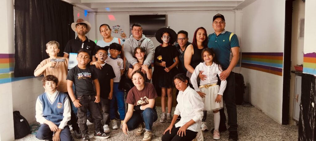 La puesta en escena fue compartida con la comunidad de niños, niñas, jóvenes y padres de familia de la fundación, como cierre del proceso formativo de trayecto corto. Esta propuesta artística se centró en el trabajo de la escucha, la mimesis y el gesto, fortaleciendo habilidades como la atención, la expresión corporal y el trabajo en equipo.