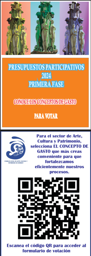 - Accede al link https://acortar.link/mH2Eer para poder hacer la votación por los conceptos de gasto que pueden fortalecer el sector de Arte, Cultura y Patrimonio.