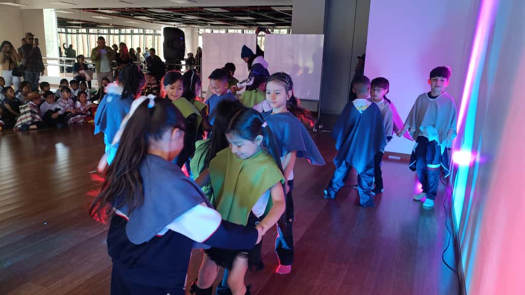 Por su parte, El Gato Golozo llegó al escenario con la picardía y el encanto propios de nuestra rumba criolla. Esta danza, llena de juego y humor, invita a reír, a compartir y a dejarse llevar por el pulso alegre de la tradición. Para los pequeños intérpretes, el proceso fue una verdadera aventura: aprendieron a reconocer su cuerpo en el espacio, a proyectar su energía hacia el público y a confiar en el movimiento como forma de expresión.