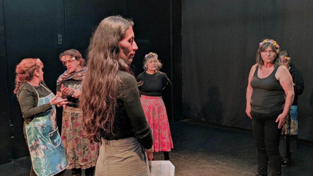 El miércoles 17 de septiembre de 2025, el grupo de teatro Alegres y Soñadoras —que lleva más de tres años trabajando juntas— realizó un ensayo abierto de su puesta en escena “Las Bacantes”, liderada por la artista formadora Dahiana Murcia, en el Teatro Experimental de Fontibón (TEF), con la participación de otros artistas formadores invitados. La actividad, en la que intervinieron siete actrices, permitió al colectivo experimentar los elementos técnicos y expresivos de un montaje profesional, en el marco del programa de Salas Concertadas y la iniciativa “Creadores a la Escena” del área de teatro del CREA. Además del trabajo escénico, las participantes recibieron observaciones de los formadores presentes.