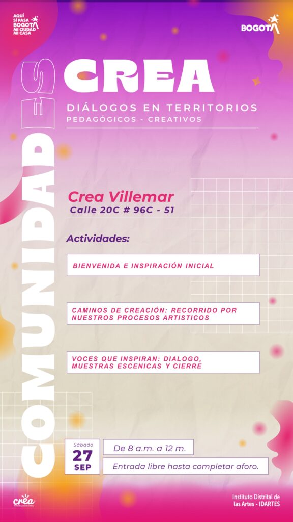 Súmate a ComunidadEs Crea Villemar, una iniciativa de Idartes que conecta a los espacios Crea con la comunidad, fortaleciendo la cultura, la educación artística y el trabajo en red.
